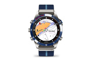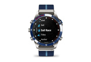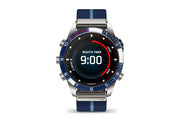 Built for living life at the helm, this luxury modern tool watch features a race-inspired striped jacquard-weave nylon strap and a stunning AMOLED touchscreen display. The 46mm Grade-5 titanium case delivers ultradurable construction.